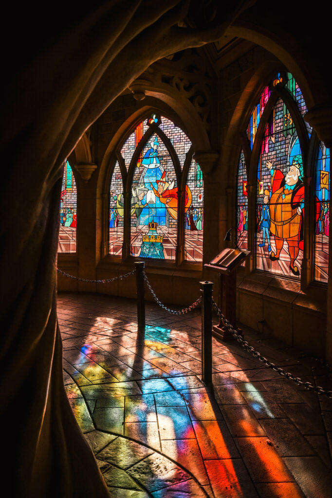 El Castillo de la Bella Durmiente es uno de los rincones más románticos del parque y un imprescindible si buscas planes románticos en Disneyland Paris. Subir a la galería superior permite contemplar las vidrieras artesanales, perfectas para una foto especial y para disfrutar de un momento íntimo dentro del parque. La música, la arquitectura, la decoración, la luz de colores de las vidrieras….todo crea un ambiente especial que te sorprenderá.